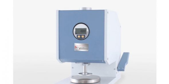 Thickness gauging apparatus for all types of shett materials. The apparatus designed in accordance with DIN/EN and ISO test specifications ensure an exact thickness determination on textiles, non-woves, geo textiles, paper, cardboard, hygienic papers, leather, rubber, floor covering and other materials.